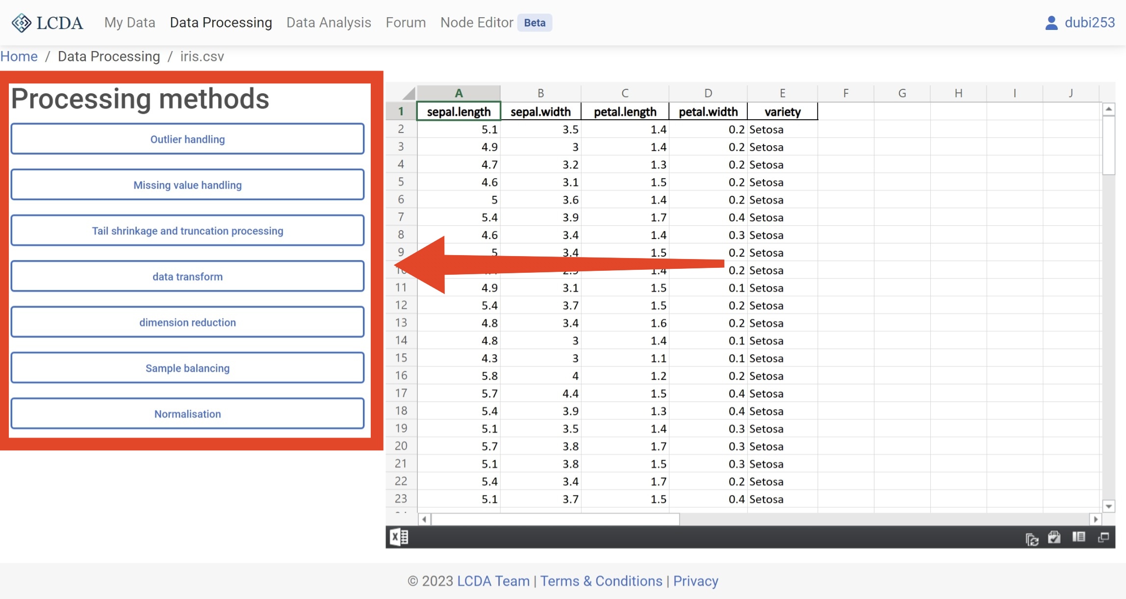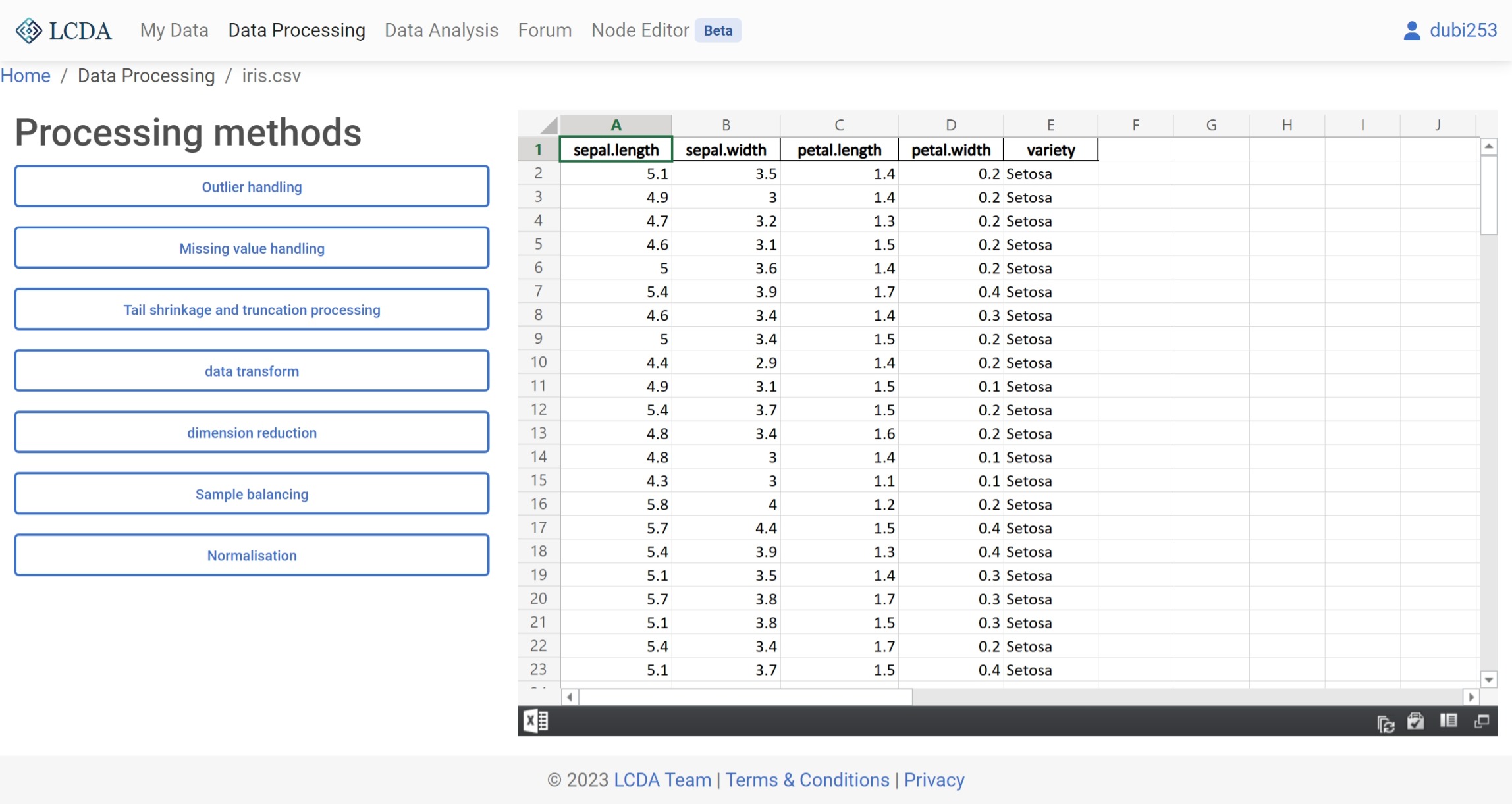 Here we use the iris.csv dataset to demonstrate the process of data processing.
