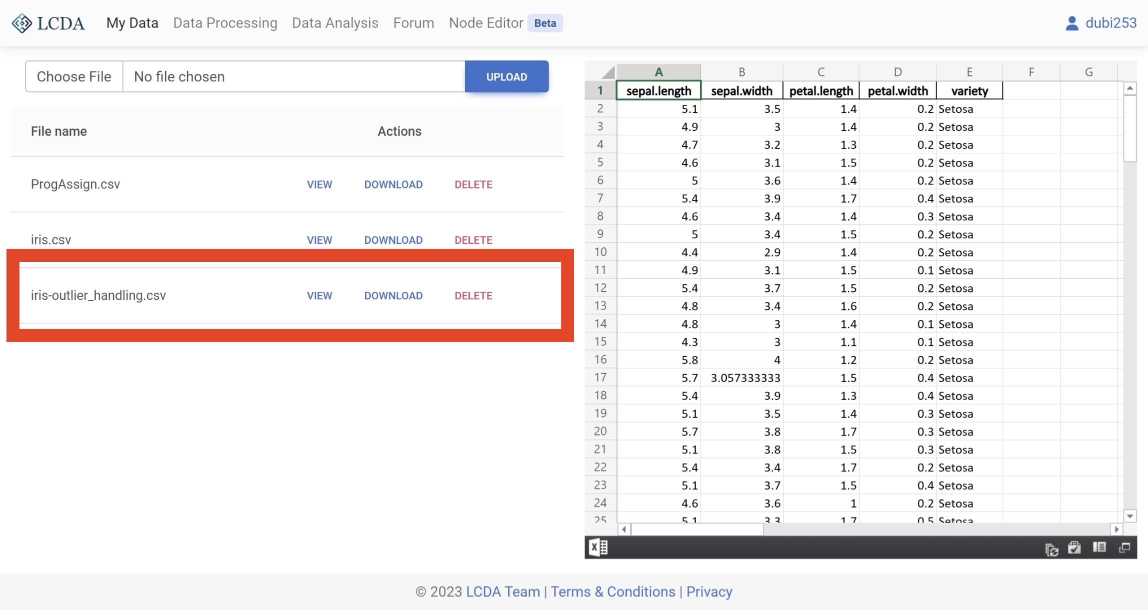 At the same time, the processed dataset will be saved and added to your list of datasets. To view or download your new dataset, you can navigate to the